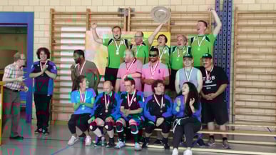 Parallel zum Int. Torball-Ziger-Cup versuchten sich drei Plauschteams erstmals im Torball. Sie hatten sich für diese Herausforderung zusammengetan. Ohne zu sehen und einzig auf das Gehör angewiesen, hechteten die mutigen Spielerinnen und Spieler nach dem akustischen Ball und schickten sich an, ihn unter den Leinen hindurch in Richtung des gegnerischen Tor zu werfen. Die zahlreichen Zuschauer hatten ebenso den Plausch wie die teilnehmenden Teams. Der eine oder andere wurde neugierig und wird vielleicht die Chance nutzen, einmal selbst den Sport auszuprobieren.